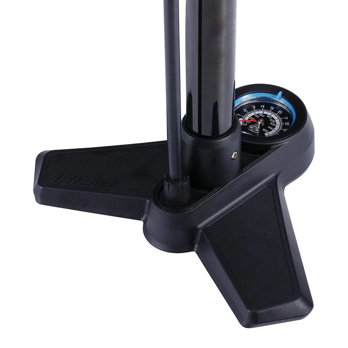 - Stalen pompbuis en stabiele voet van composietmateriaal met geïntegreerde drukmeter.