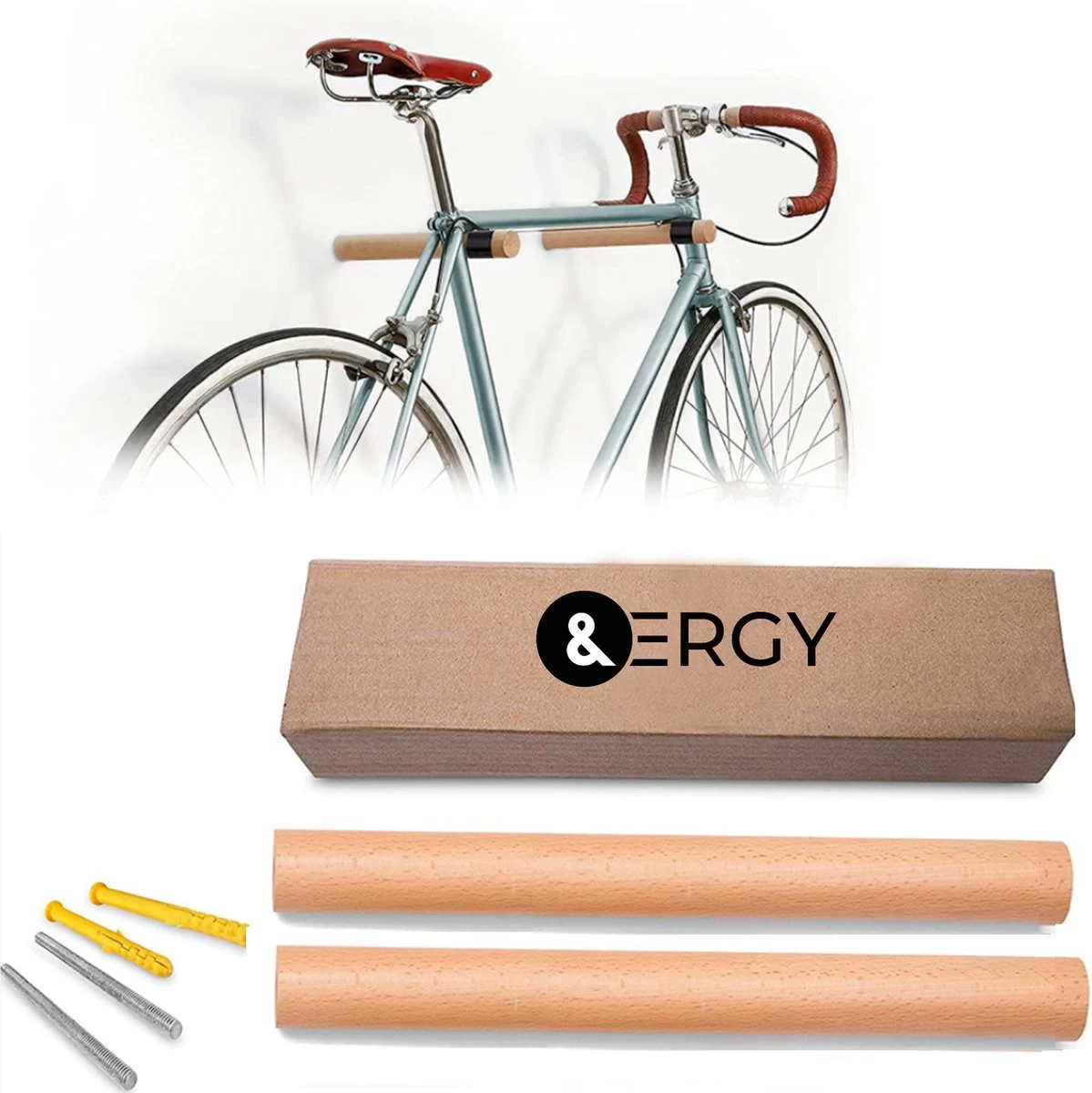 Wil je je fiets ophangen aan de muur, maar vind je een traditioneel ophangsysteem niet mooi? Dan hebben wij een oplossing voor jou! Met deze massief beukenhouten palen van het merk &ERGY® hang je je fiets op een elegante manier op. In je slaapkamer, woonkamer, garage of elders in huis. Uiteraard ook te gebruiken om andere spullen in huis op te hangen, zoals bijvoorbeeld ’n ladder.