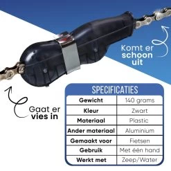 Met onze moderne fietsketting reiniger kun je jouw ketting weer stralend schoon maken. De borstels in deze kettingreiniger maken met gebruik van een goede kettingontvetter de ketting in een handomdraai grondig schoon. Het verwijdert zand en vuil tussen de schakels, waardoor de levensduur van de ketting en andere aandrijfonderdelen wordt velengd.