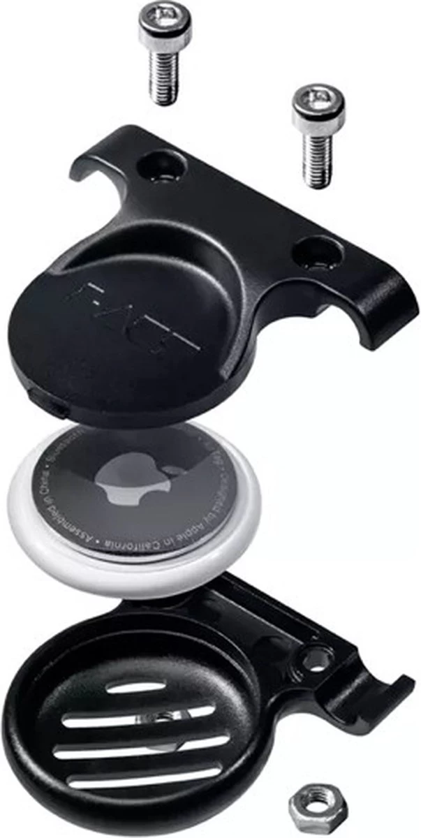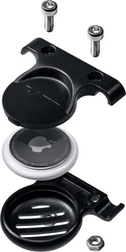 De SADDLE MOUNT verbergt je AirTag uit het zicht onder het zadel van je fiets. De twee clamshell delen klikken samen rond je AirTag en zijn stevig bevestigd aan de zadelrails door middel van 2 schroeven.