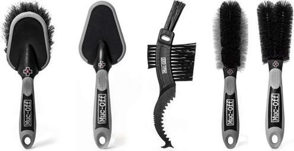 De Muc-Off 5-Brush set is ideaal om het frame en onderdelen schoon te maken.