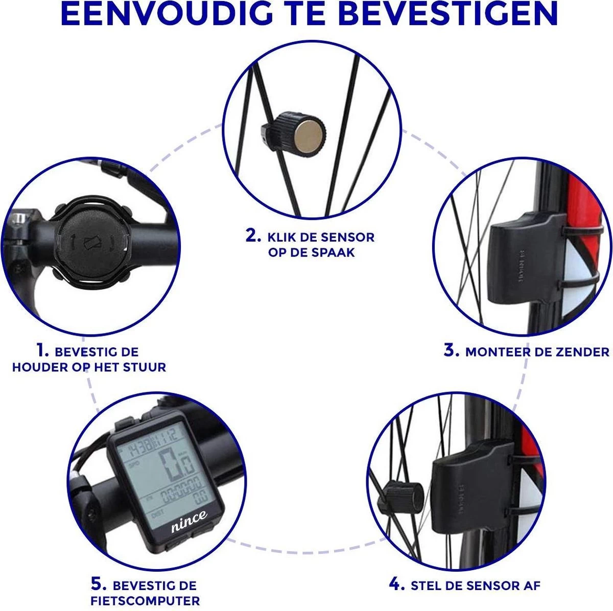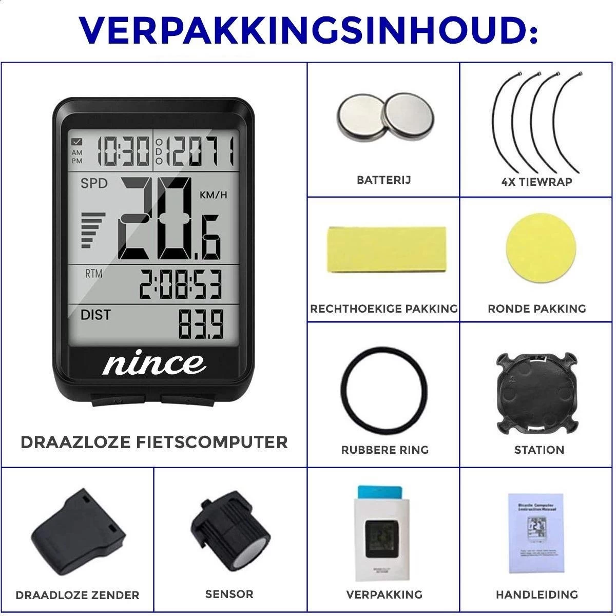 Met de compacte Nince fietscomputer heb jij altijd al je statistieken bij de hand. Deze uitgebreide draadloze fietscomputer is eenvoudig te monteren en beschikt over functies als snelheid, afstand, rijtijd, dagafstand, totaalafstand, klok, maximale snelheid, totale rijtijd en meer! De fiets computer is licht van gewicht, waterdicht en geschikt voor iedereen.