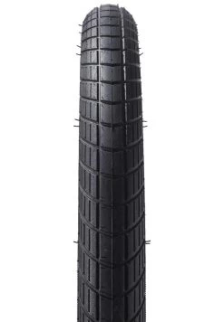 Schwalbe Buitenband – Big Apple Race Zwart 20×2.00/50-406. Luchtvering direct ingebouwd. Met de Big Apple begon 10 jaar geleden de balloonbiketrend: comfortabel fietsen zonder kostbare veertechnieken. Luchtkussenbanden worden Gebruikt als natuurlijke vering. Met circa 2 bar rolt een balloonbike wonderbaarlijk licht en met volledige veerwerking. Een normale band met een – Bruineedte van 37mm moet tot 4 bar keihard opgepompt worden om vergelijkbaar goed te rollen. De Big Apple is geschikt voor E-bikes met een trapondersteuning tot 25km-u. Voor de snellere E-bikes, de S-pedelecs, worden banden geadviseerd welke tot 50 km-u zijn goedgekeurd.