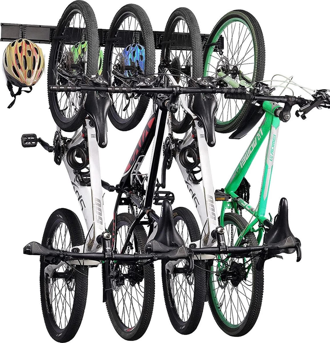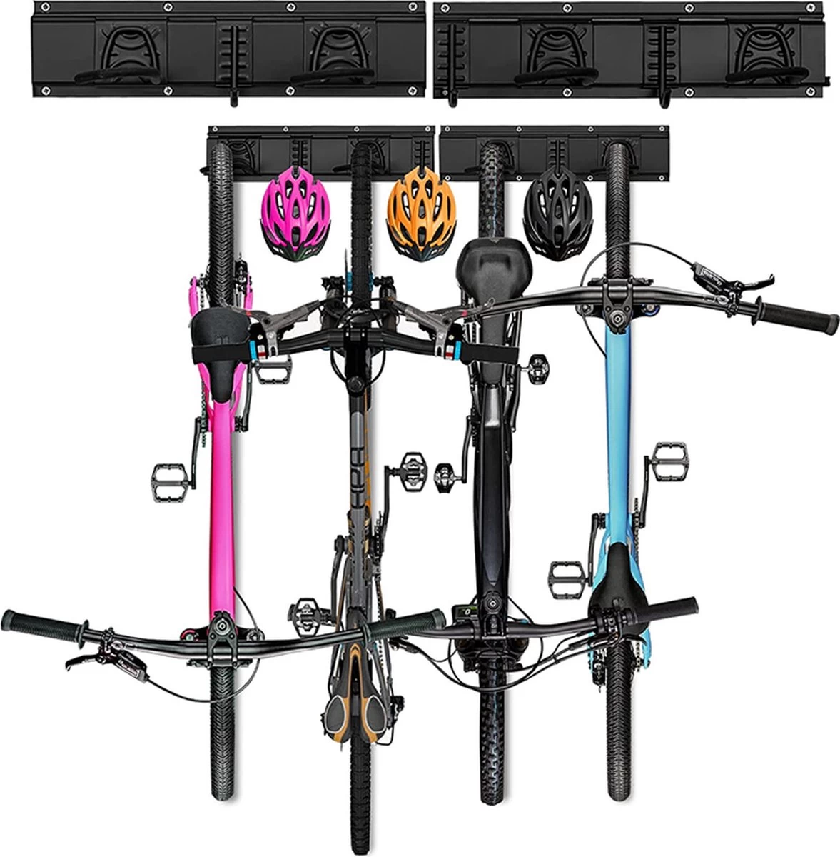 Multifunctioneel fiets ophangsysteem voor maar liefst 5 fietsen, fietshelmen en andere accessoires.