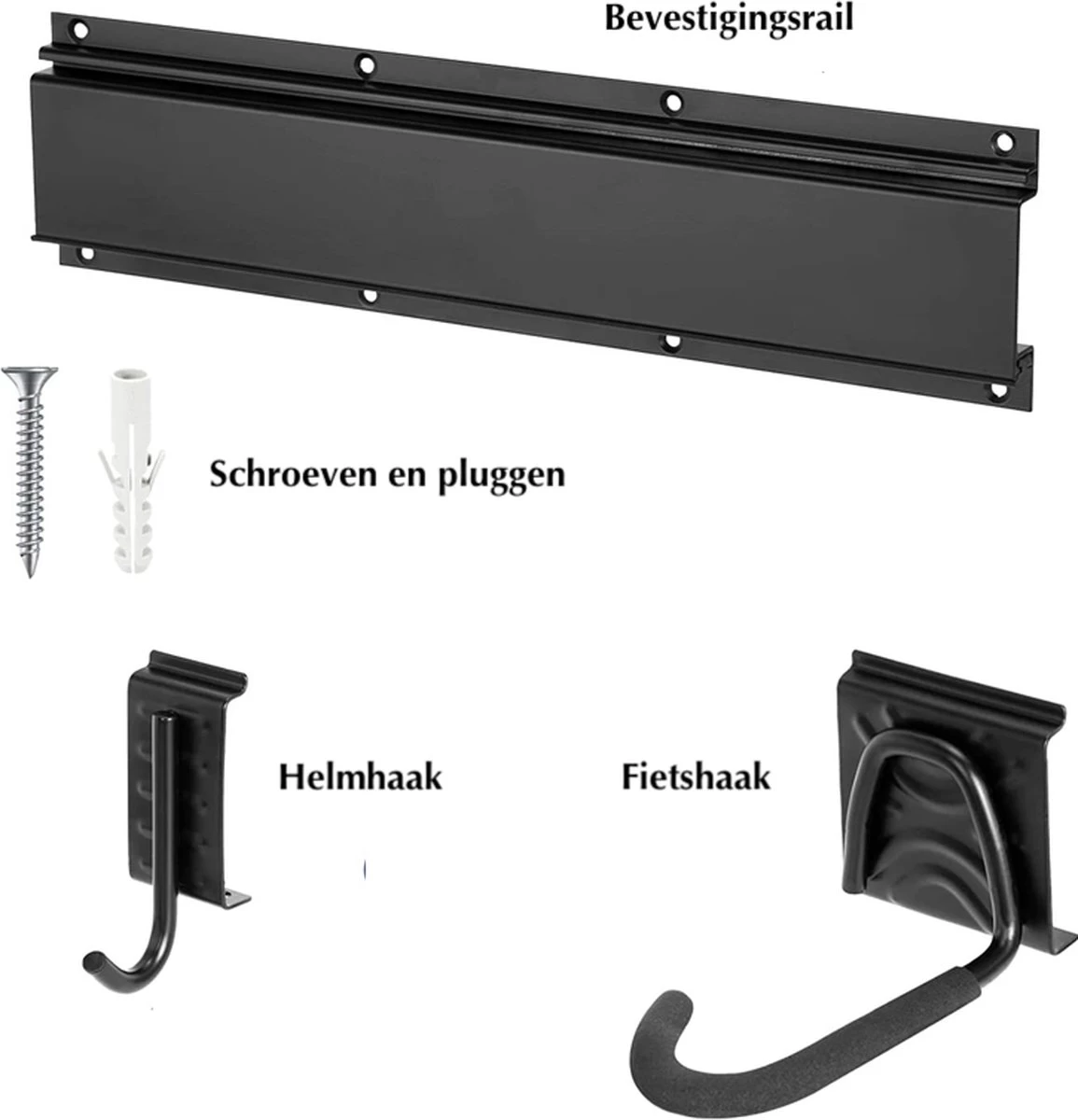 De drie basisrails kunnen zowel naast elkaar of op verschillende plaatsen/ruimtes worden gebruikt, bijvoorbeeld een rail voor volwassen fietsen, een rail voor kinderfietsen en een rail voor alle accessoires, zoals fietshelmen en fluohesjes. Dit multifunctioneel ophangsysteem kan dus worden gebruikt door de hele familie. De rails zijn eenvoudig te monteren en de haken kan je zelf verdelen overheen de drie bevestigingsrails. Hiernaast zijn alle fietshaken voorzien van een rubberen bescherming, zodat jouw fietsen niet beschadigd worden.