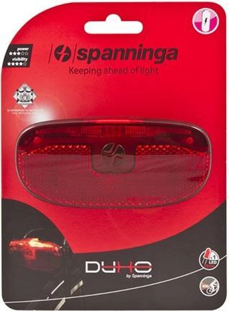 Het Duxo achterlicht is uitgerust met de Light Line Technologie©. Deze verspreidt het licht van slechts 1 LED via een speciaal gevormde lichtlijn. Dit is voldoende voor een licht opbrengst van 5 Candela. Hiermee ben je zichtbaar tot maar liefst 400 meter. Samen met de grote reflector, biedt dit achterlicht optimale veiligheid op de weg. Je bent goed zichtbaar vanaf de achterkant en vanaf de zijkanten.