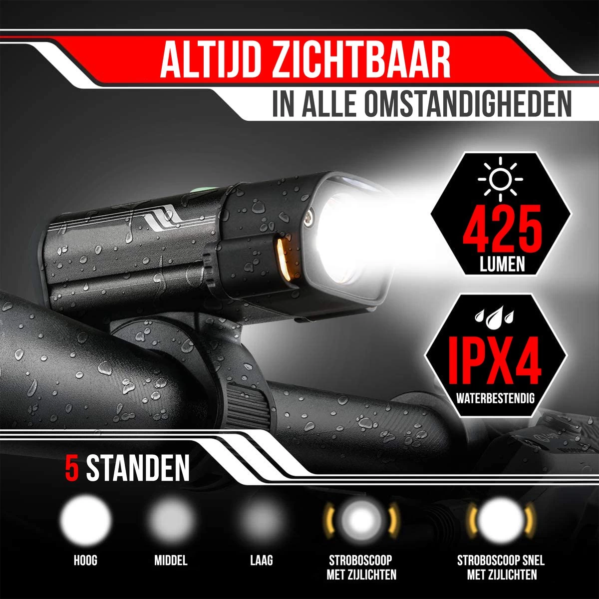 - Lichtsterkte (voor): 425 lumen