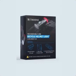 Voel je veilig op de fiets met de TIKKENS LED Helm lamp set. Deze lamp bestaat uit een voorlicht én achterlicht en kan je makkelijk bevestigen op elke type fietshelm. De lamp is waterbestendig, lichtgewicht en duurzaam. Je kan ze opladen via USB-kabel, dus geen gedoe met batterijen. Ook te gebruiken bij andere activiteiten, zoals voor racefiets verlichting, hardlopen, kamperen of bij het uitlaten van de hond. Met een batterijduur van 4 tot 12 uur en een accu indicator, zodat je weet wanneer je ze terug moet opladen. Zowel voor- als achterlicht hebben diverse lichtstanden. Zien en gezien worden!