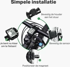 ✔Inhoud: 1x Fietscomputer – 1x Transmitter – 1x Stuurhouder – 1x Bevestigingsmaterialen – 1x Digitale handleiding