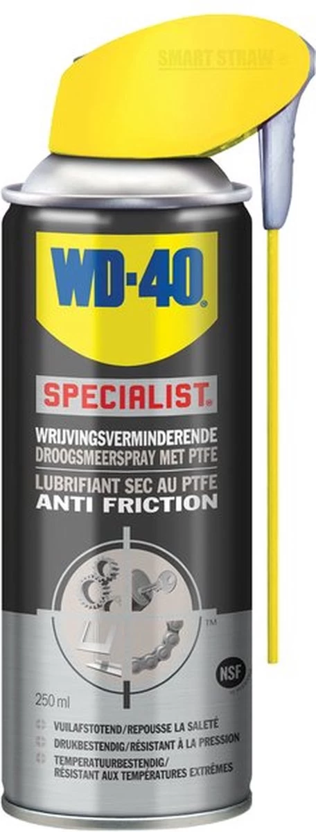 WD-40 Specialist Droogsmeerspray met PTFE. Vertrouwde kwaliteit, speciaal voor intensief gebruikte mechanismen.